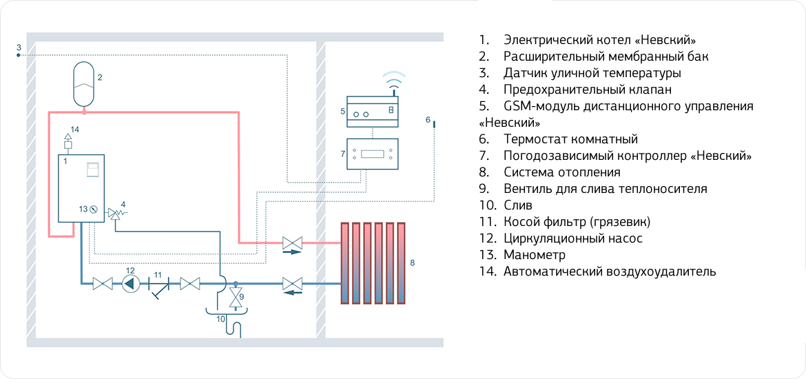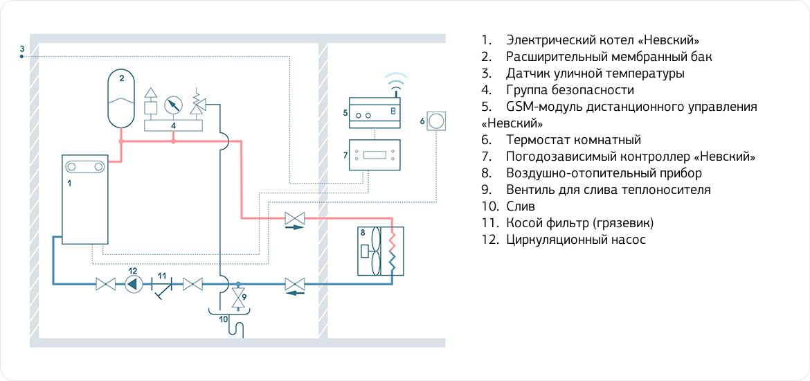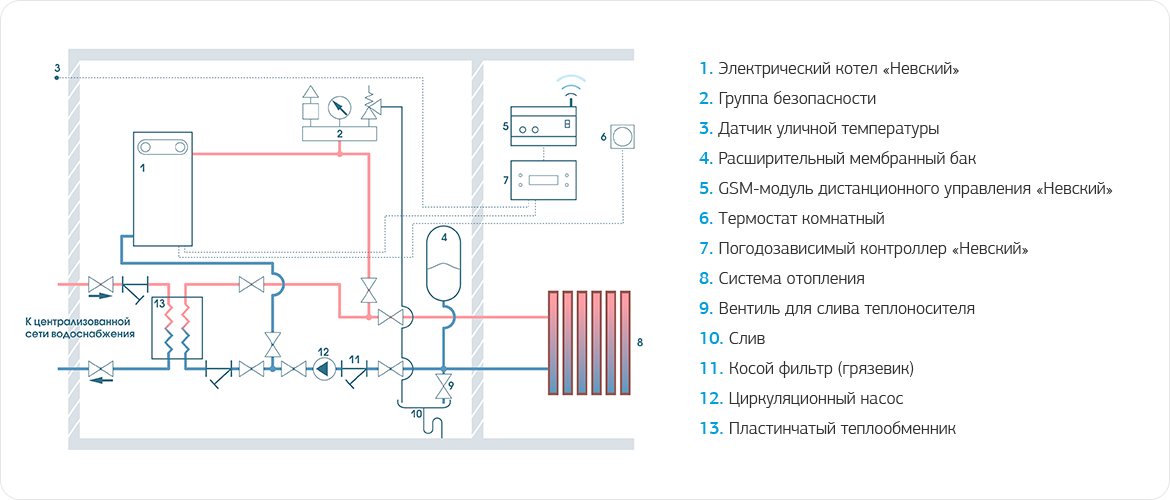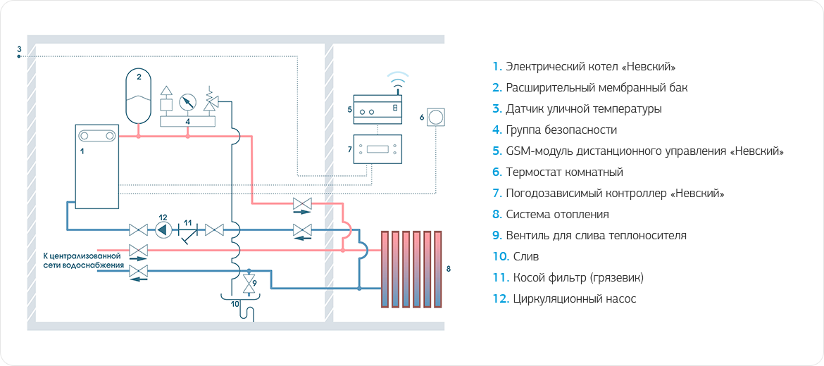 Схема подключения электрокотла в отопительную систему с централизованной системой теплоснабжения с закрытым контуром