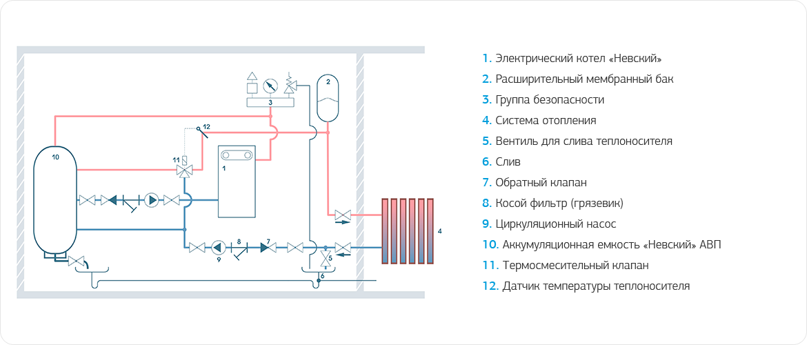 Схема подключения электрокотла в отопительную систему с теплоаккумулятором
