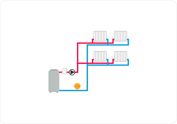 В таких системах, по сравнению с двухтрубной схемой, существует более высокий уровень давления, создаваемый циркуляционным насосом, необходимым для работы однотрубной системы отопления.