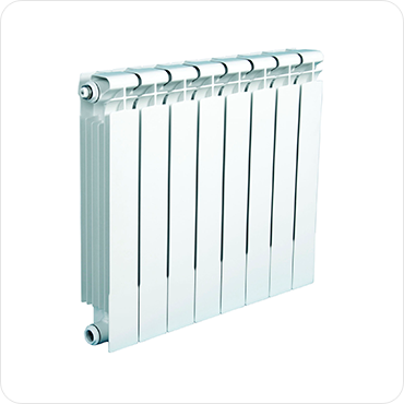 Биметаллические радиаторы. Это одно из лучших и оптимальных решений в конструкции радиаторов, которое включает в себя хорошую теплопроводность алюминия и прочность стальных труб. Теплоноситель в биметаллических радиаторах движется по стальным трубам, а тепло отводится алюминиевыми ребрами. Таким образом, количество воды в секции уменьшено (примерно 150 мл), что делает их более экономичными по сравнению с другими видами радиаторов. Биметаллические радиаторы обладают мощностью порядка 200 Вт. Такой вид радиаторов объединяет в себе преимущества стальных и алюминиевых радиаторов, исключая их недостатки. Стальные трубы исключают возможность контакта алюминия с теплоносителем, вследствие этого отсутствует газообразование, повышается прочность конструкции, рабочее давление значительно повышается (до 30 бар). А алюминий придает им эстетичный дизайн и хорошую теплопроводность.