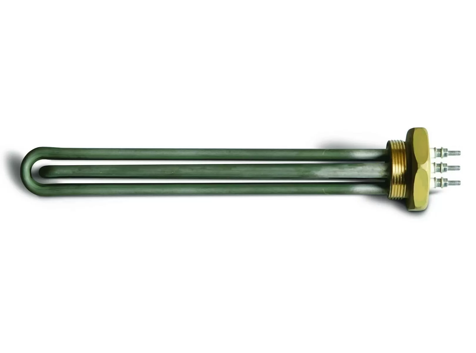 Нагрев воды в водонагревателе может производиться как от блока встроенных электротэнов, так и от теплообменника. Возможен комбинированный вариант. Каждый ТЭН 100 кВт имеет латунное основание и состоит из трех ТЭНов, изготовленных из нержавеющей стали AISI316L. Данная марка стали дает усиленную коррозионную стойкость, что увеличивает срок службы блок-ТЭНов 100 кВт.
