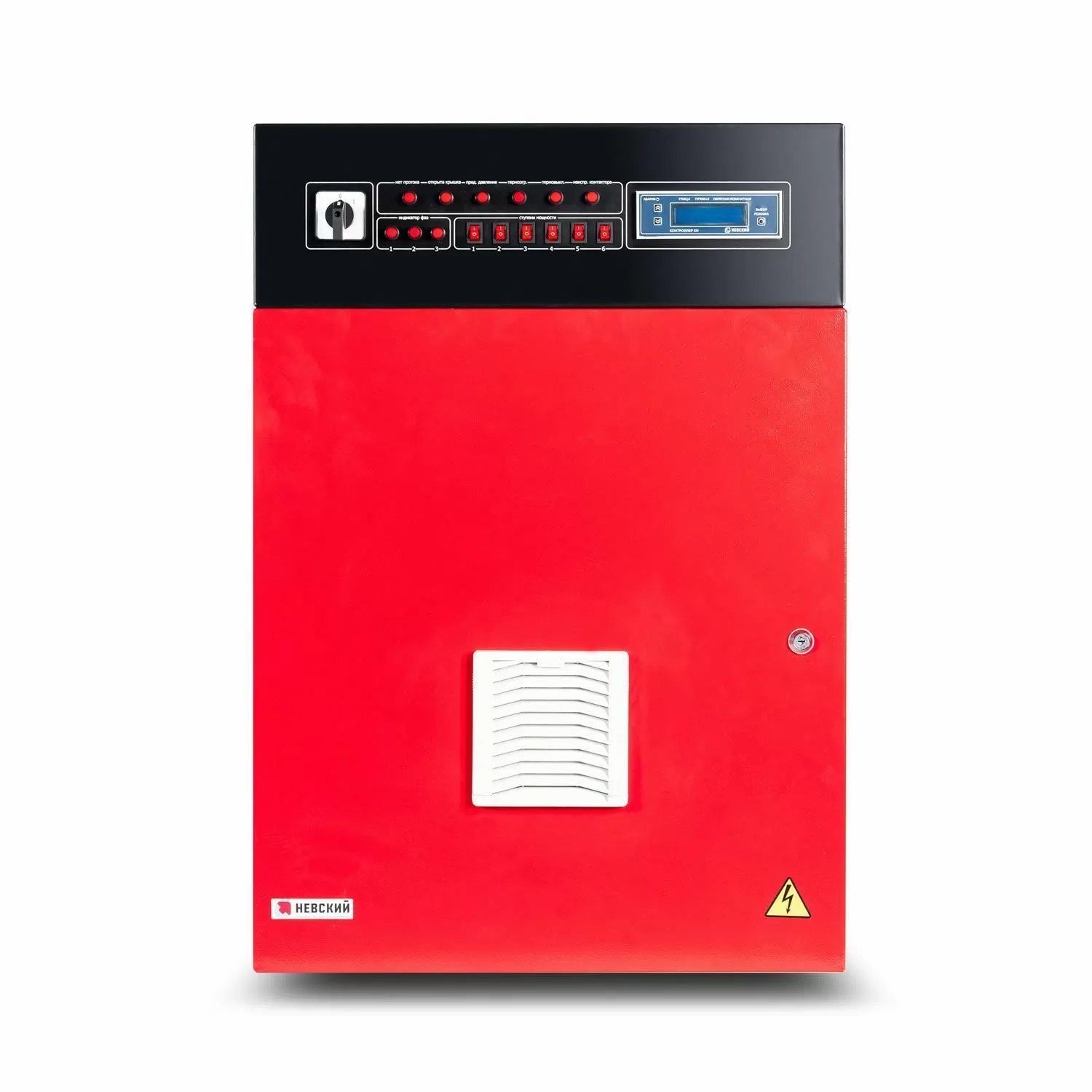 Шкаф автоматики и управления водонагревателя имеет встроенный контроллер, обеспечивающий плавное регулирование температуры и автоматический выбор требуемой мощности. Шкаф автоматики и управления обеспечивает многоступенчатую защиту, как каждого нагревательного элемента, так и всего водонагревателя в целом по всем возможным параметрам.